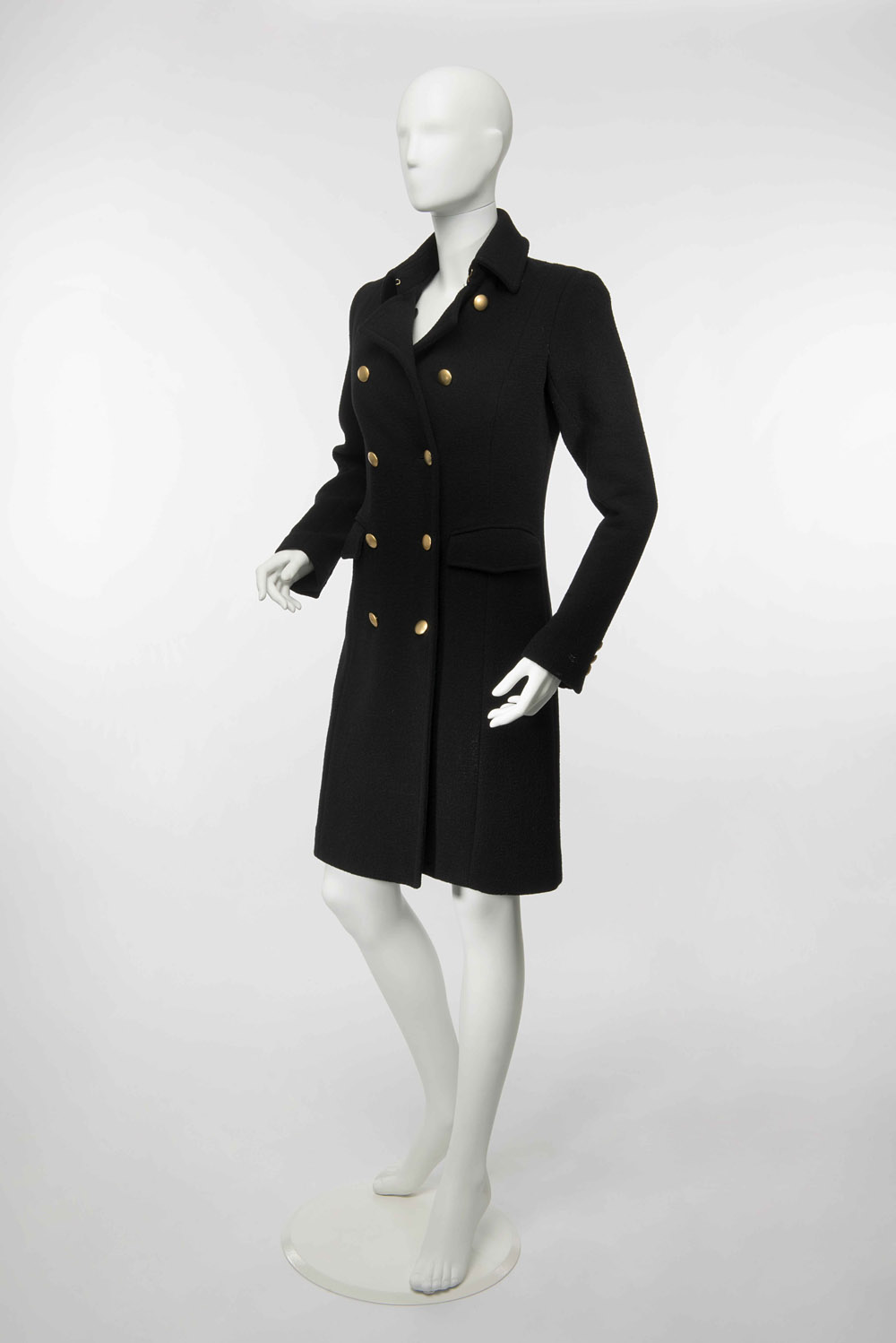 Aspesi: cappotto in lana nero, chiusura doppiopetto con bottoni in metallo dorato satinato, tg 42