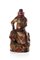 Scultura in legno laccato e dipinto raffigurante Guandi seduto con un...