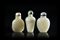 Tre snuff bottles in giada color celadon, di varie forme, con coperchio in...