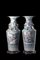 Coppia di vasi biansati in porcellana Famiglia Rosa, decorati con pannelli geometrici con figure in padiglioni e giardini, contornati da ricchi motivi floreali, le spalle angolari arricchite da chilong, con basi in legno (uno con restauro e felature) Cina, sec. XIX A pair of Famille Rose baluster vases decorated with panels enclosing figures in interior and exterior scenes, the angular shoulder embellished with chilong and Buddhist lions, with wood bases (one with restoration and hairline cracks) China, 19th century (h. 61 cm.)
