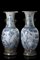 Coppia di vasi in porcellana con decoro a rilievo bianco e blu di uccelli su...