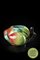 Lavapennelli in porcellana policroma a forma di pesca, composto da due frutti...