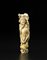 Scultura in avorio raffigurante Liu Hai in piedi, con volto sorridente e...