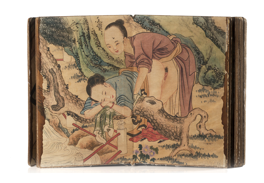 Piccolo album a fisarmonica di dipinti a tema erotico, realizzati con...