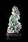 Gruppo in giadeite verde mela raffigurante un vaso contornato da fiori e...