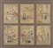 Sei dipinti raffiguranti eleganti dame in interni e giardini, con iscrizioni...