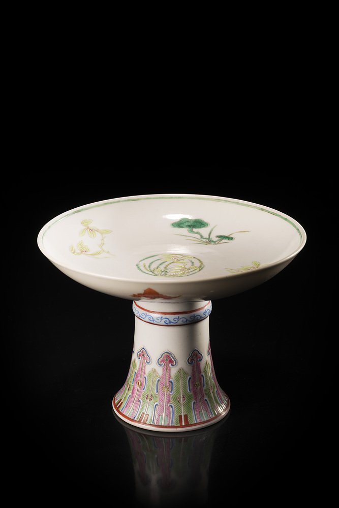 Alzata in porcellana decorata a motivo di piante negli smalti della Famiglia...