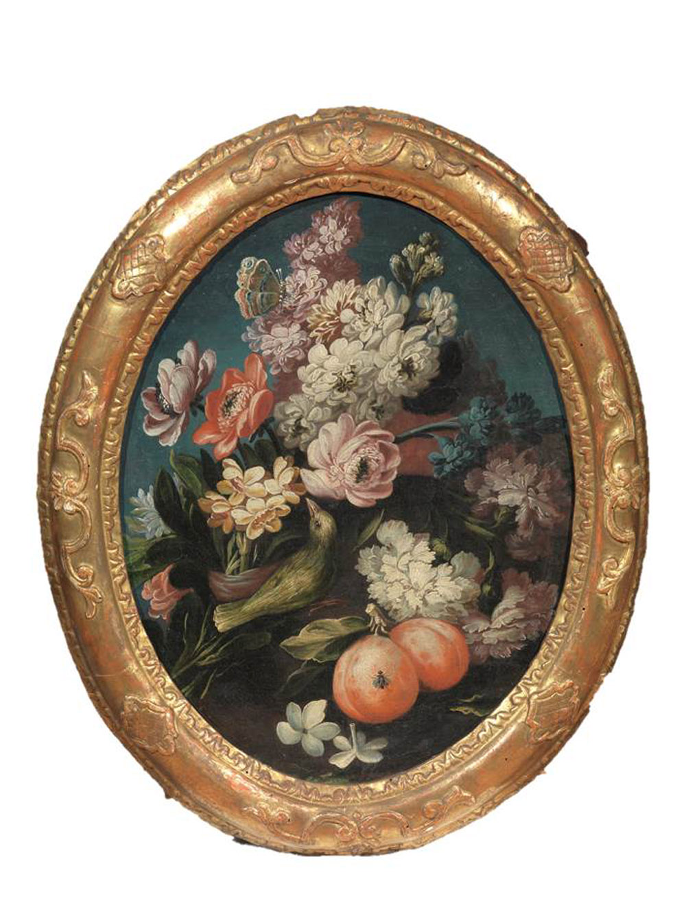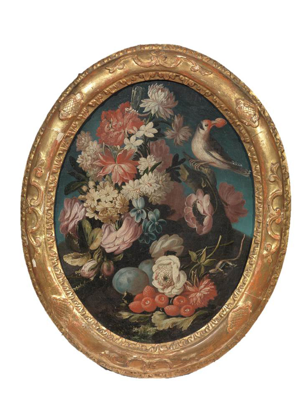 Scuola piemontese, sec. XVIII FIORI E FRUTTA CON VOLATILI coppia di dipinti...