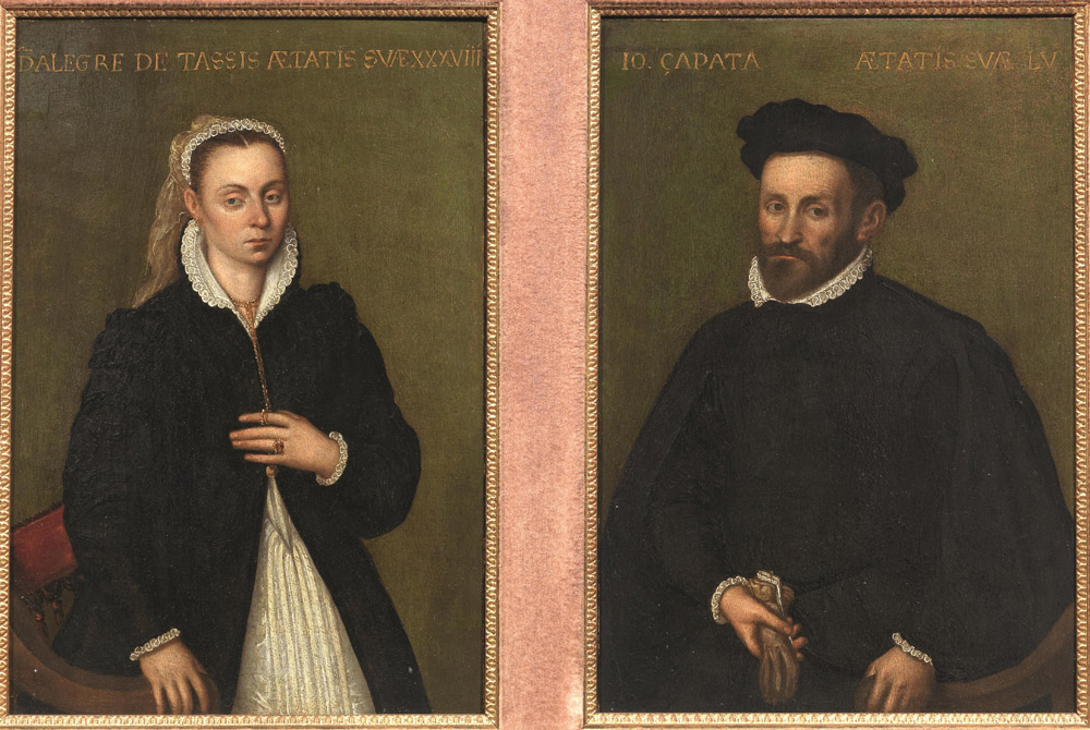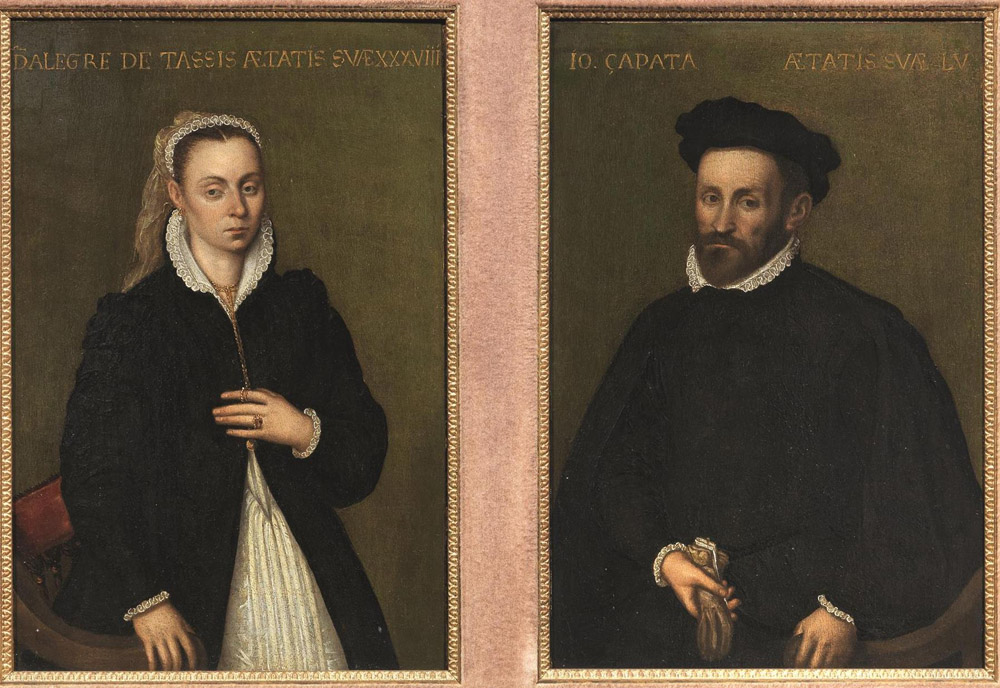 al recto le seguenti iscrizioni: "DALEGRE DE TASSIS AETATIS SUAEXXXVIII" "IO CAPATA AETATIS SVAE LV"