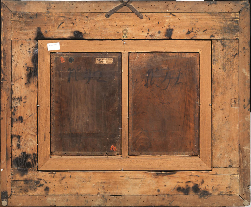 coppia di dipinti ad olio su tavola , cm 39x27 ciascuno (2) montati entro unica cornice
