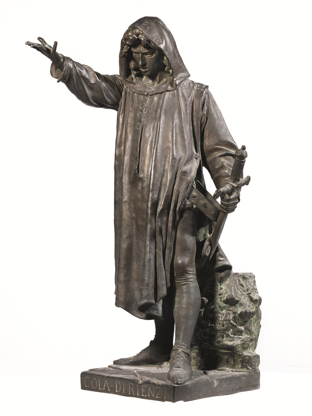 Girolamo Masini (Firenze 1840 - 1885) COLA DI RIENZO bronzo , alt. cm 78 La...