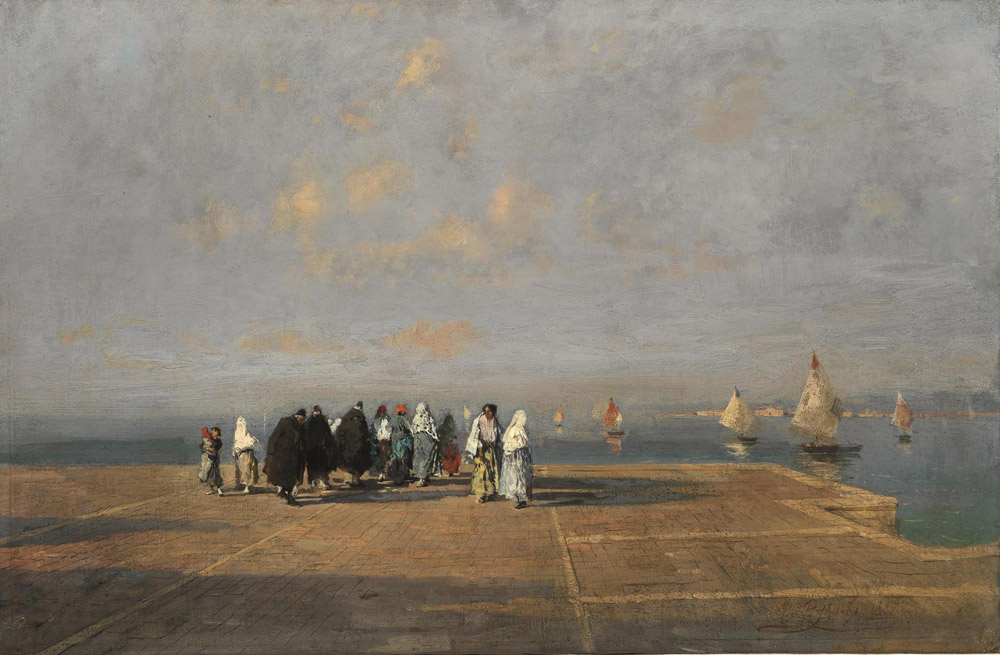 Mosè Bianchi(Monza 1840 - 1904)CHIOGGIA o MARINA CON FIGUREolio su...
