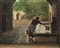 Luigi Monteverde(Lugano 1841 - Lugano 1923)LA FONTANA DI DAVESCOolio su tela, cm 36x45firmato e datato Lugano 1902" a destrasul retro: firmato, locato "Lugano" e datato "1902"ProvenienzaCollezione privataBibliografiaOttocento. Catalogo dell'arte italiana dell'800, n. 38, Milano 2009, tavola a coloriNato a Lugano il 10 settembre 1843, figlio di Giovanni, droghiere proveniente da Chiavari, e di Caterina Primavesi, di Lugano, Luigi Monteverde è ottavo di quattordici figli. Rimasto orfano, nel 1855 emigra con alcuni fratelli in Argentina; tornato a Lugano nel 1862, nel 1864 risulta iscritto al corso di ornato dell'Accademia di Brera, dove viene premiato con una medaglia d'argento. A Milano si appassiona alla fotografia. Tra il 1864 e il 1869 compie due nuovi viaggi a Montevideo, dove apre un'impresa di pittura. Rientrato definitivamente in patria, dal 1870 frequenta con successo l'Accademia di Brera. Conclusi gli studi nel 1876, si divide tra Lugano e Davesco. Assidua è la sua presenza ad esposizioni italiane e svizzere. All'inizio del Novecento, dopo che alcune sue tele vengono rifiutate, entra in polemica con le giurie incaricate della scelta delle opere per le esposizioni nazionali di belle arti. Insieme agli artisti appartenenti all'ala più conservatrice, si stacca dalla SPSAS, aderendo nel 1906 alla Secessione (Società libera degli artisti svizzeri). Negli ultimi anni conduce una vita ritirata.Sin dagli anni '70 del XIX secolo il modo di dipingere di Monteverde si caratterizza per la ricostruzione fedele e descrittiva della realtà, e per una costante e minuta cura nella resa dei particolari. I suoi riferimenti vanno ricercati nel naturalismo lombardo, con forti accenti derivati da Pietro Bouvier e da Filippo Carcano, ma anche nella pittura napoletana, in primis nei fratelli Palizzi. Per una certa ridondanza e un virtuosismo assai marcato nella disposizione degli oggetti, soprattutto nelle nature morte e nei ritratti, la sua pittura viene definita da Giuseppe Martinola "lenticolare". Tra i soggetti ricorrenti figura il paese di Davesco: numerose sono le tele che hanno per soggetto la fontana del villaggio – quadri di genere, che riproduceva più volte, dai titoli assai emblematici, quali Arriva il postino, Confidenze, Battesimo inatteso e il nostro La fontana di Davesco. La sua pittura si indirizza soprattutto verso forme naturalistiche, con un'attenzione particolare al dato oggettivo sia nei soggetti di genere sia nei paesaggi sia nelle nature morte, dove primeggia tanto da esser definito iperbolicamente dai suoi contemporanei il "Raffaello dell'uva"."