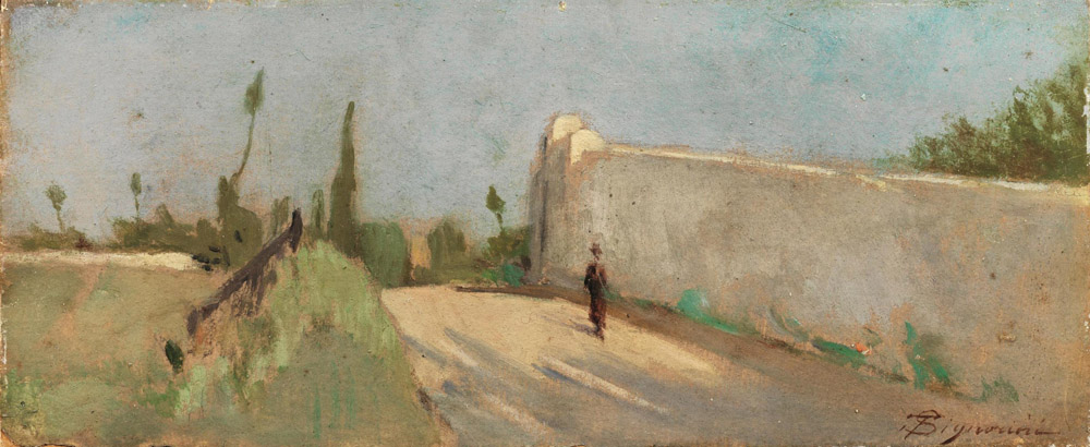 Telemaco Signorini(Firenze 1835 - 1901)PASSEGGIATA IN CAMPAGNAolio su carta...