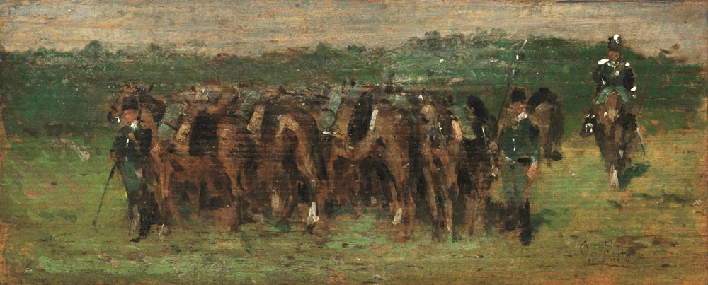 Giovanni Fattori(Livorno 1825 - 1908)MANOVRE DI ARTIGLIERIAolio su tavola, cm...