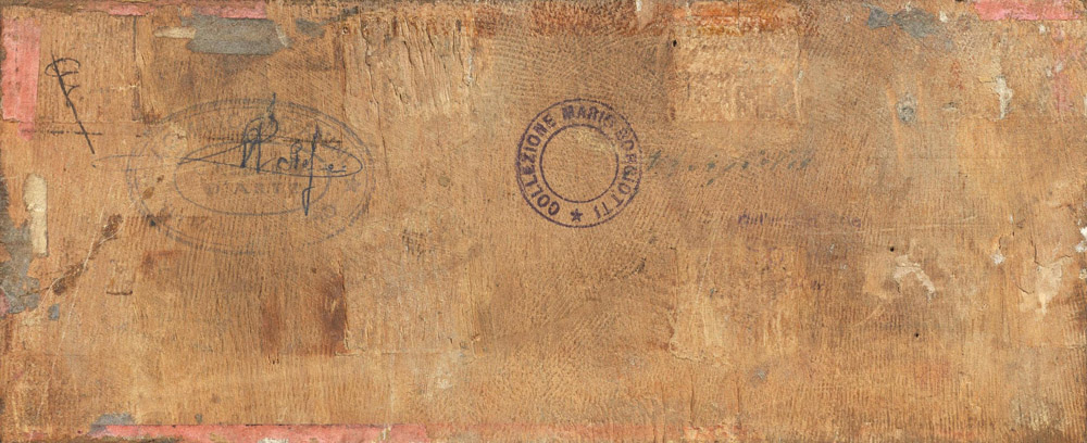 sul retro: timbro Collezione Mario Borgiotti", firma di Mario Borgiotti, timbro "Romano Stefanini Galleria d'Arte" con firma di Romano Stefanini