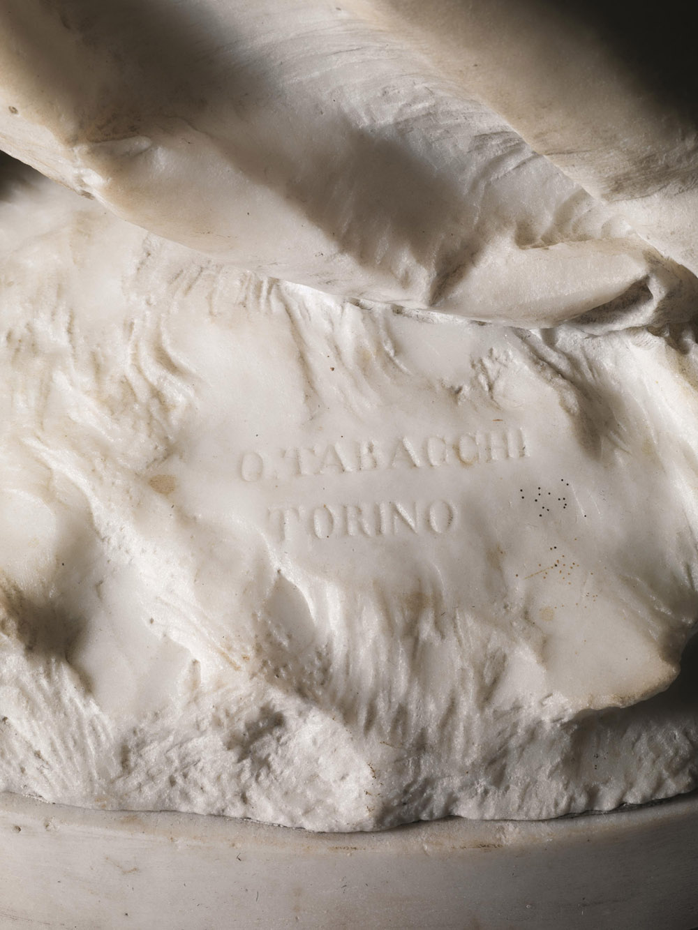Odoardo Tabacchi(Valganna 1831 - Milano 1905)MOSCA CIECAmarmo, alt. cm...