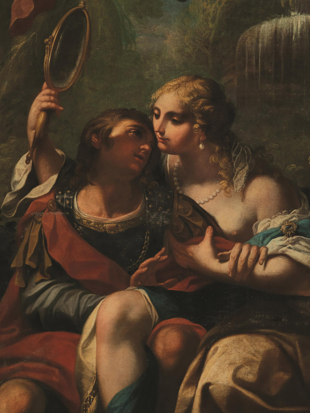 Questa suggestiva storia d''amore e di magia, raccontata da Torquato Tasso nella “Gerusalemme liberata”, è stata fonte di ispirazione per molti artisti soprattutto di epoca barocca che hanno raffigurato l’abbandono amoroso dei due amanti.
