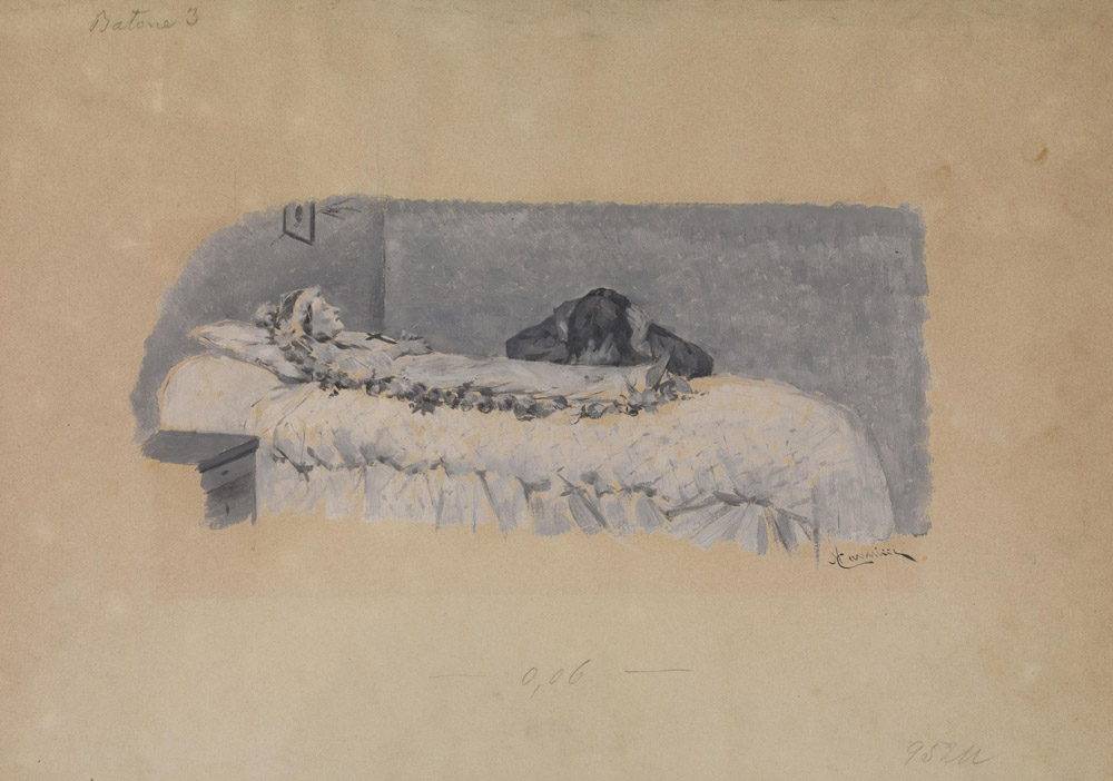 Bambina sul letto di morte . Tempera su carta. mm 340x470.