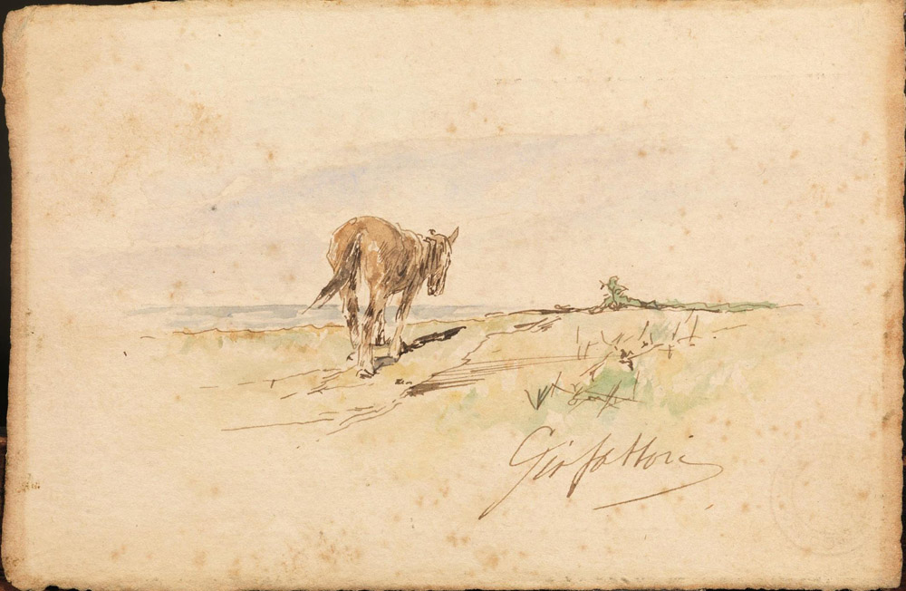 Fattori, Giovanni (Livorno 1825 – Firenze 1908) CAVALLO AL PASCOLO...
