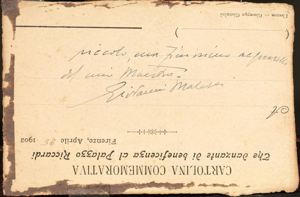 Palazzo Riccardi. Firenze Aprile 25 1902” e recante l’iscrizione