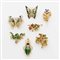 Lotto composto da sette spille flora e fauna in oro giallo, bianco e rosso...