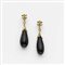 Orecchini pendenti in oro giallo con al lobo due quadrifogli centrati da due diamanti come nei triangoli a snodare due goccie di onice, g.14,30 Onyx and diamond gold pendant earings