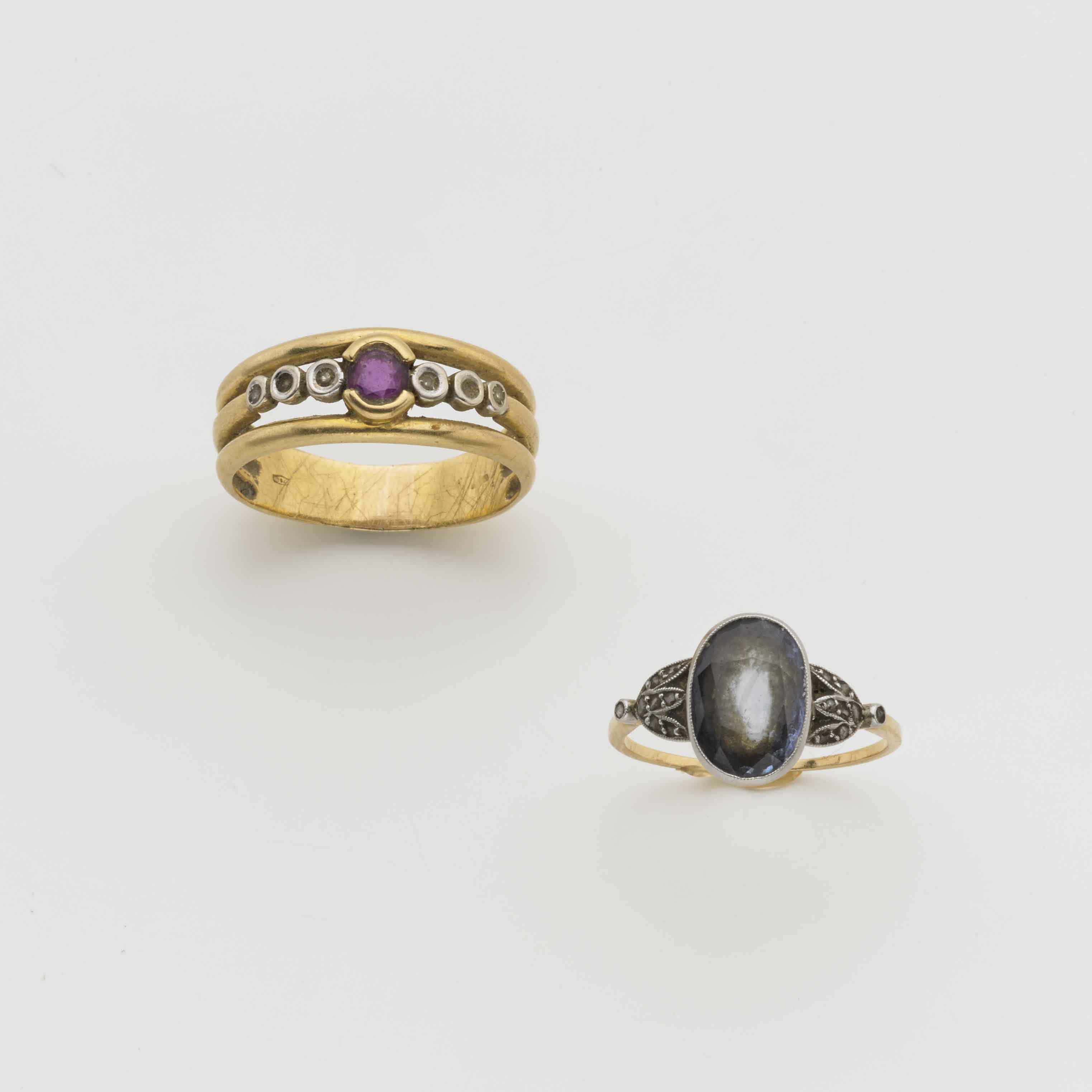 Lotto 41 | Lotto composto da due anelli in oro giallo, bianco e argento con un rubino...