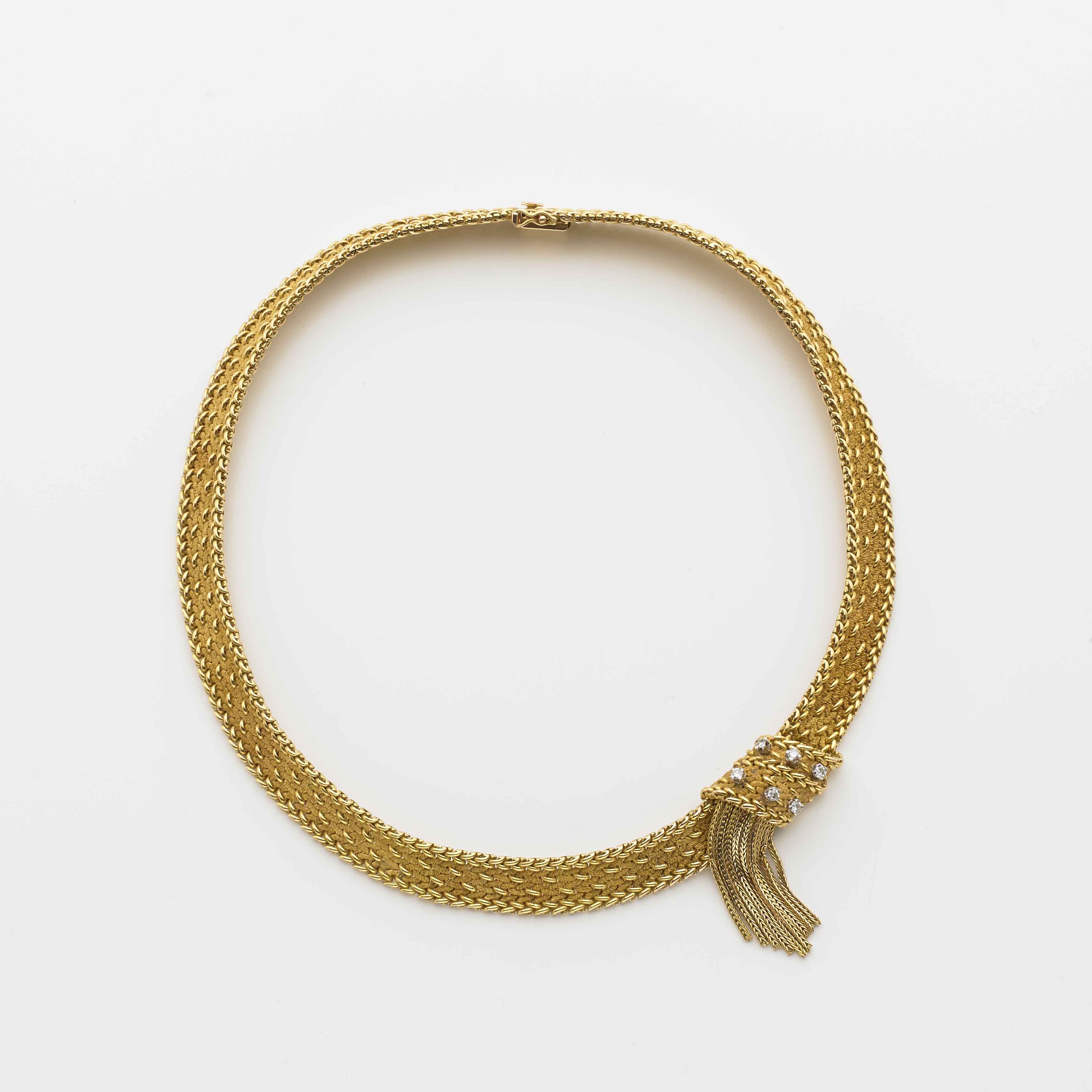 Collier in oro giallo a motivo con frangia laterale e diamanti rotondi g....