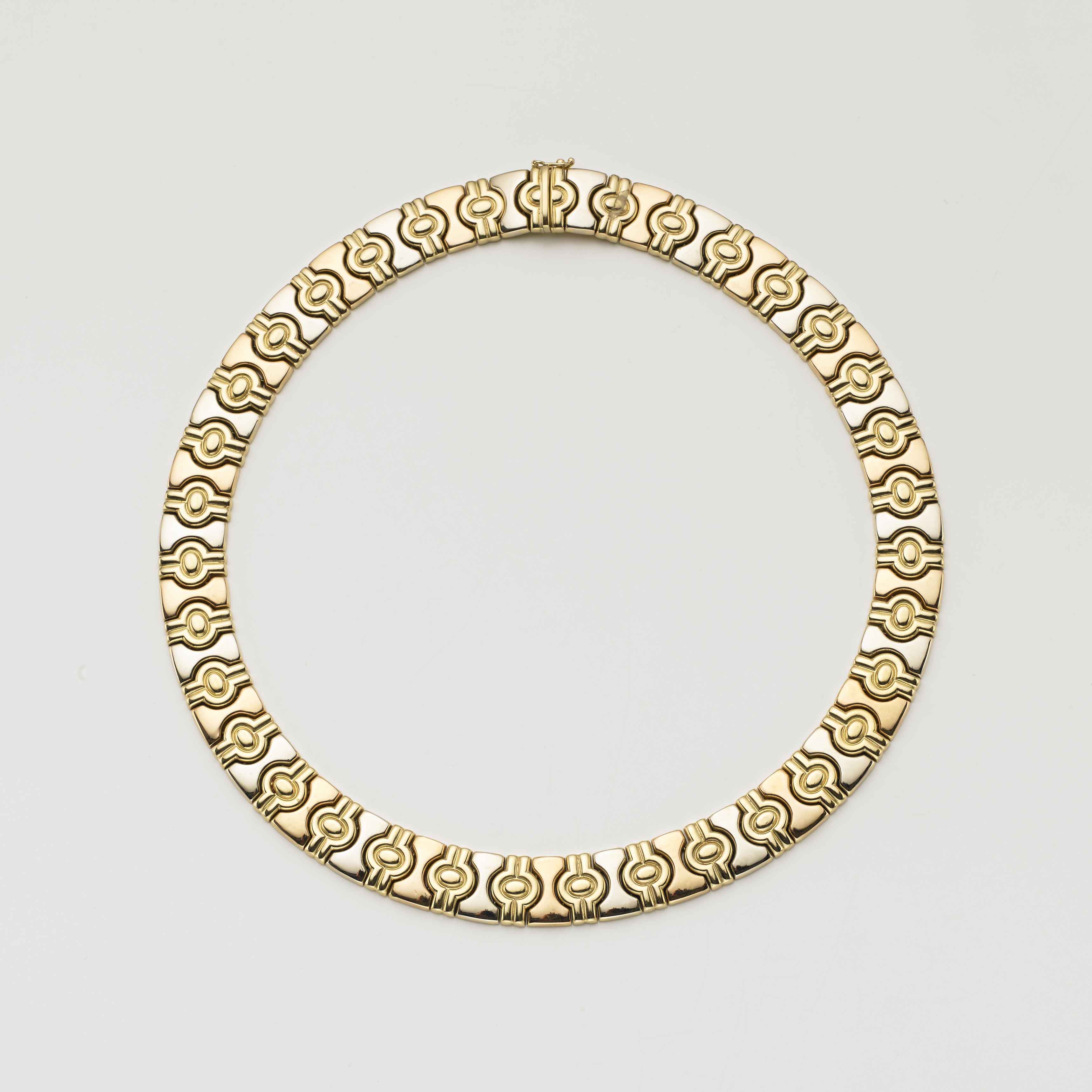 QUADRI Collier modulare in oro giallo, rosso e bianco g. 75,20 altezza cm 1,40 circa, g. 75,40 QUADRI Modular yellow, red, and white gold necklace