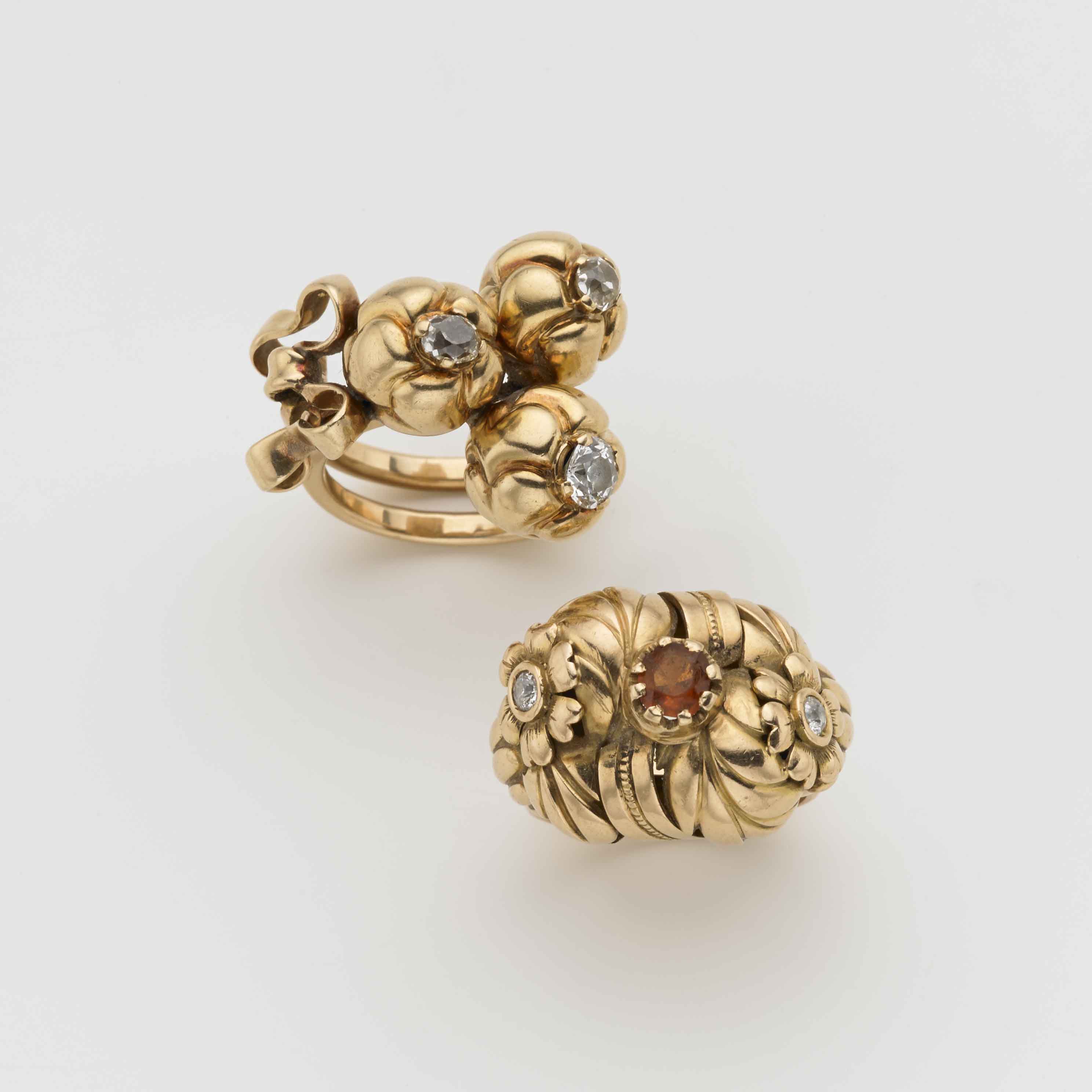 Lotto composto da due anelli in oro giallo con diamanti g. 28,90 Misure 14/54 Lot comprising two gold rings with diamonds