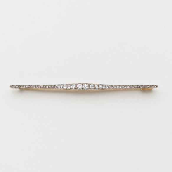 Spilla in oro giallo e bianco con diamanti rotondi taglio a brillante vecchio...
