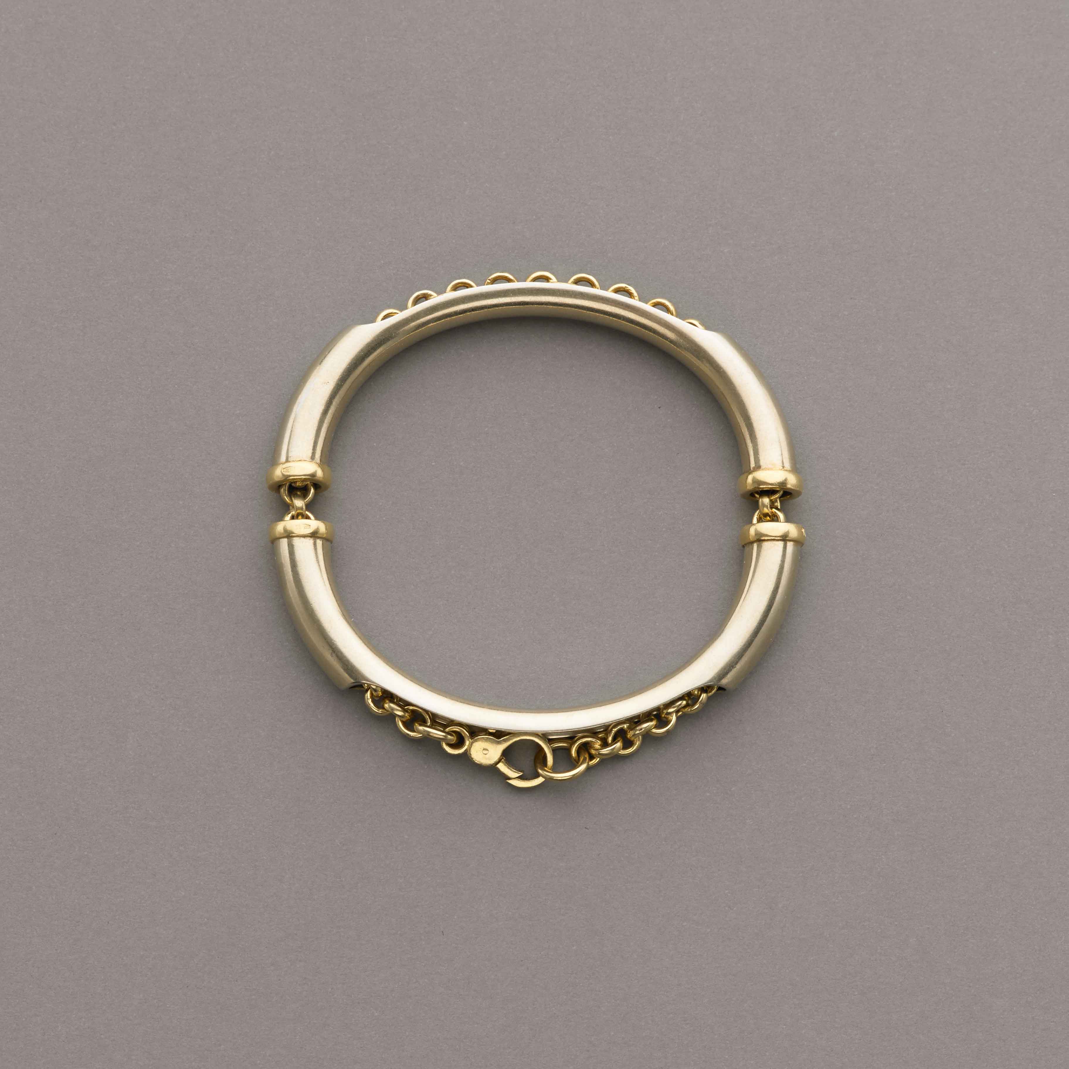 POMELLATO Bracciale in oro bianco e giallo semi-rigido con catena a scomparsa...