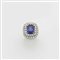 Anello in oro bianco con al centro uno zaffiro ottagonale di ct. 8,20 circa contornato da due giri di diamanti rotondi taglio brillante misura 8 48 g. 9 Accompagnato da analisi gemmologica del CISGEM gemmological report n. 1164 del 22/09/2015 Milano White gold Liberty brooch with diamonds and a sapphire. Appended CISGEM short report