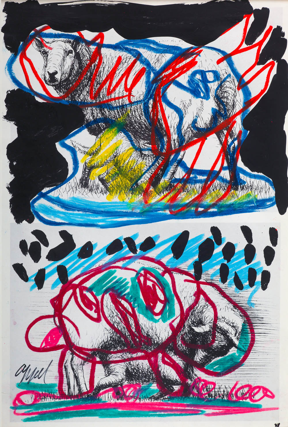 KAREL APPEL Amsterdam 1921- 2006 Composizione Dipinto su serigrafia di Erny...