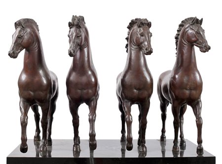 FRANCESCO MESSINA Linguaglossa 1900 - 1995 Quadriglia scultura in bronzo /...