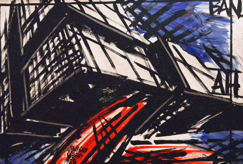 VINICIO BERTI Firenze 1921 -1991 Costruzione in alto Olio su tela / autentica su foto 35x50