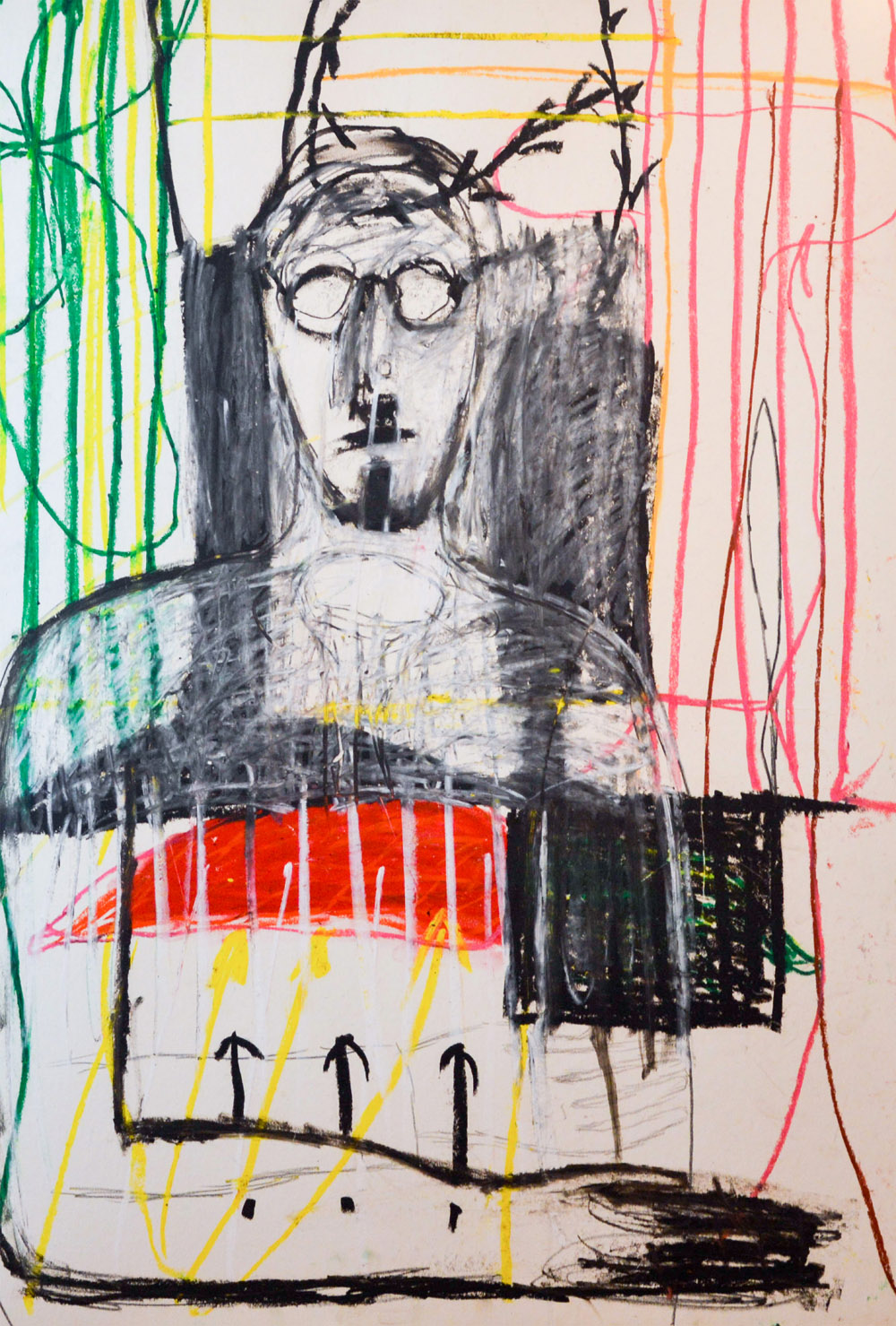 MIMMO PALADINO Padula 1948 Figura Olio e pastello su carta / autentica su...