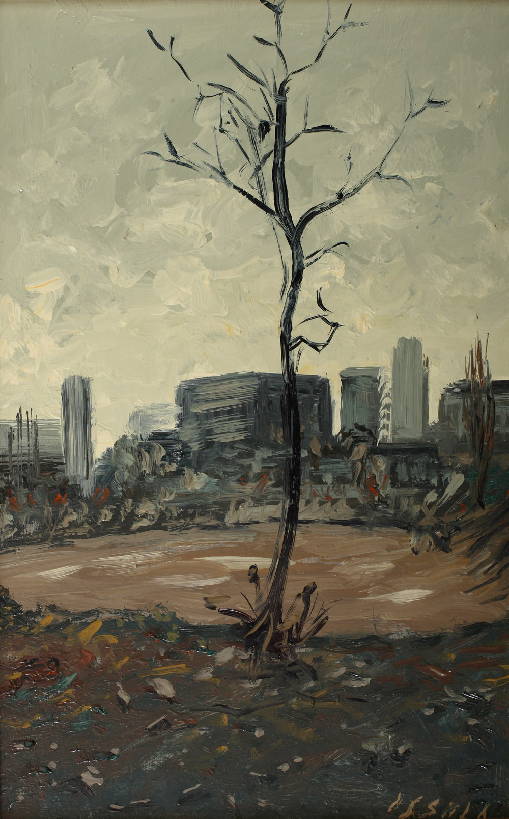 GIANCARLO OSSOLA Milano 1935 Dov’era il circo 2002 olio su tela / autentica su foto 40x25