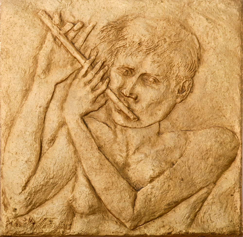 PERICLE FAZZINI Suonatore di Flauto Bassorilievo dorato 30X30