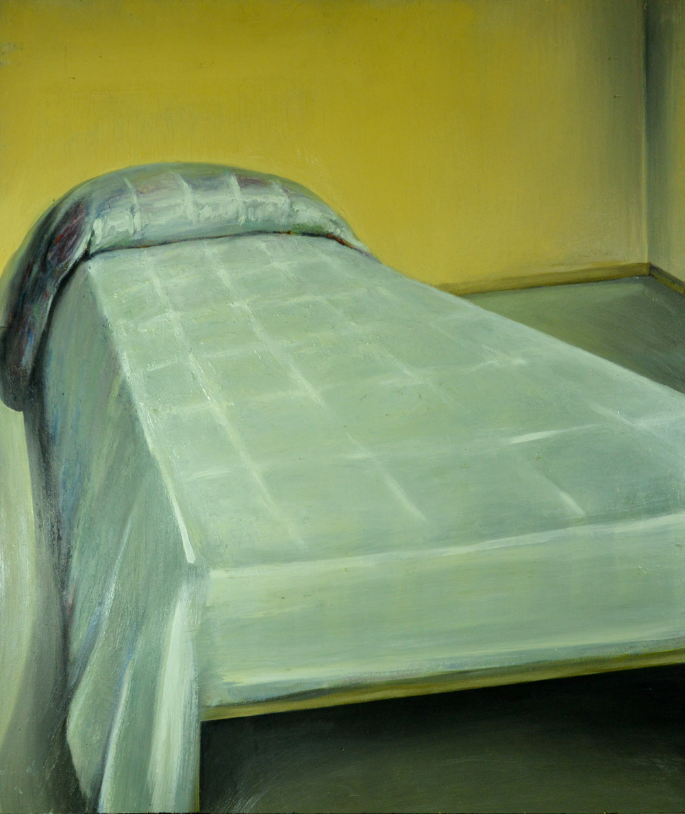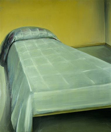 CALUSCA (LUCA SCANDERA) Catania 1975 Letto rifatto Olio su legno / parere dell'artista di autenticita' 80x93