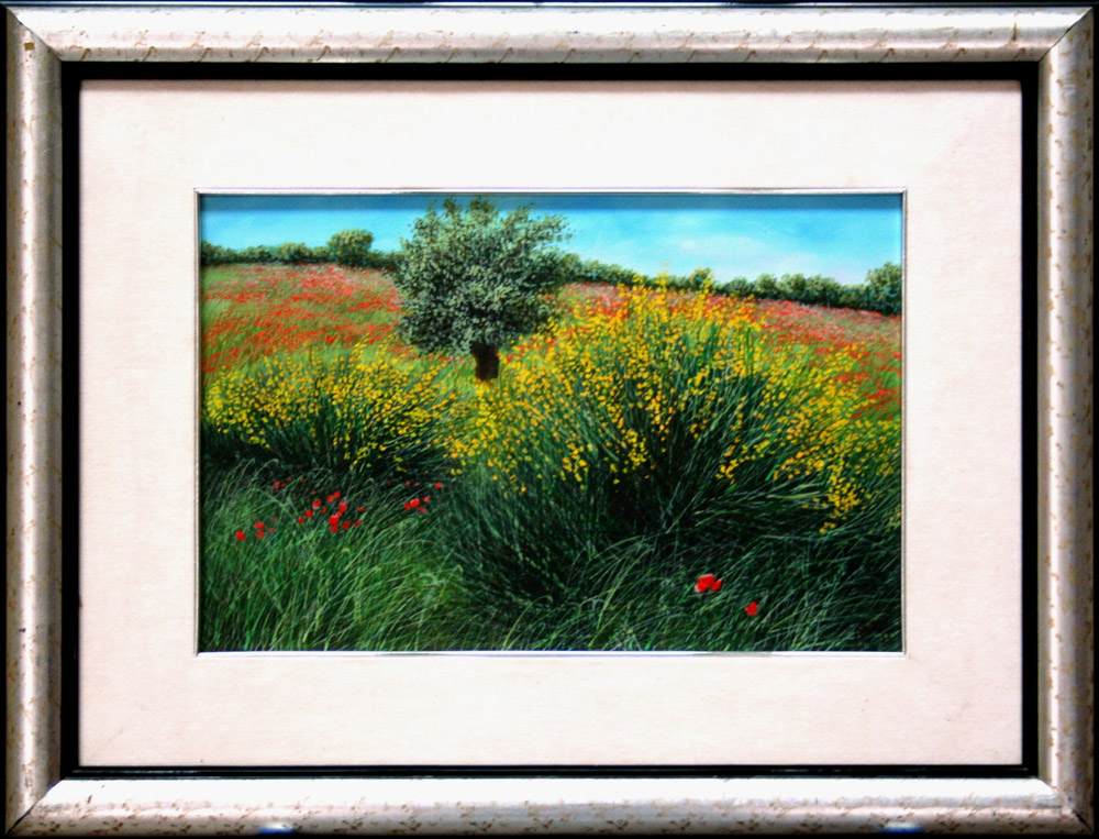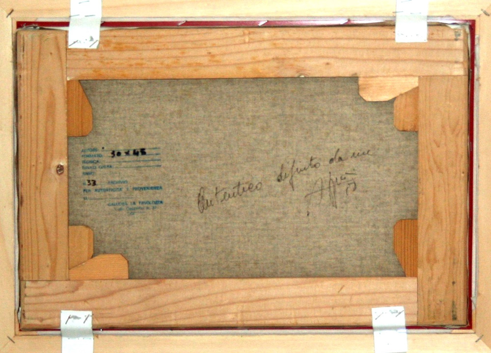 Franco Azzinari 1949, San Demetrio Corone (Cs) - [Italia] senza titolo olio su tela 30x45 1989 firma dell’artista in basso a destra e sul retro con codice di archivio; con cornice formato 55x70 cm certificato di autenticità firmato dall’artista
