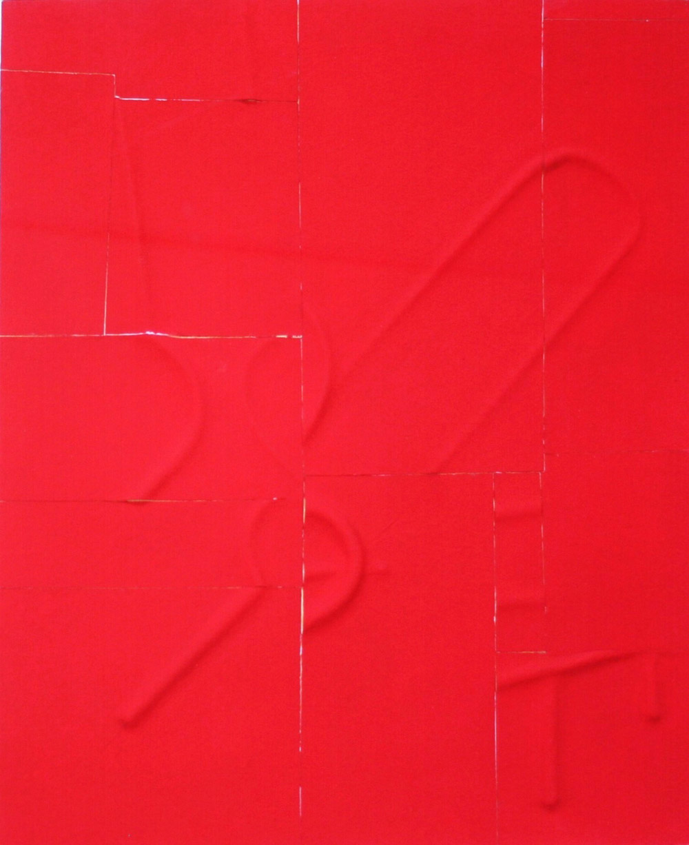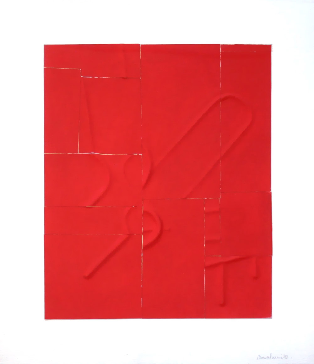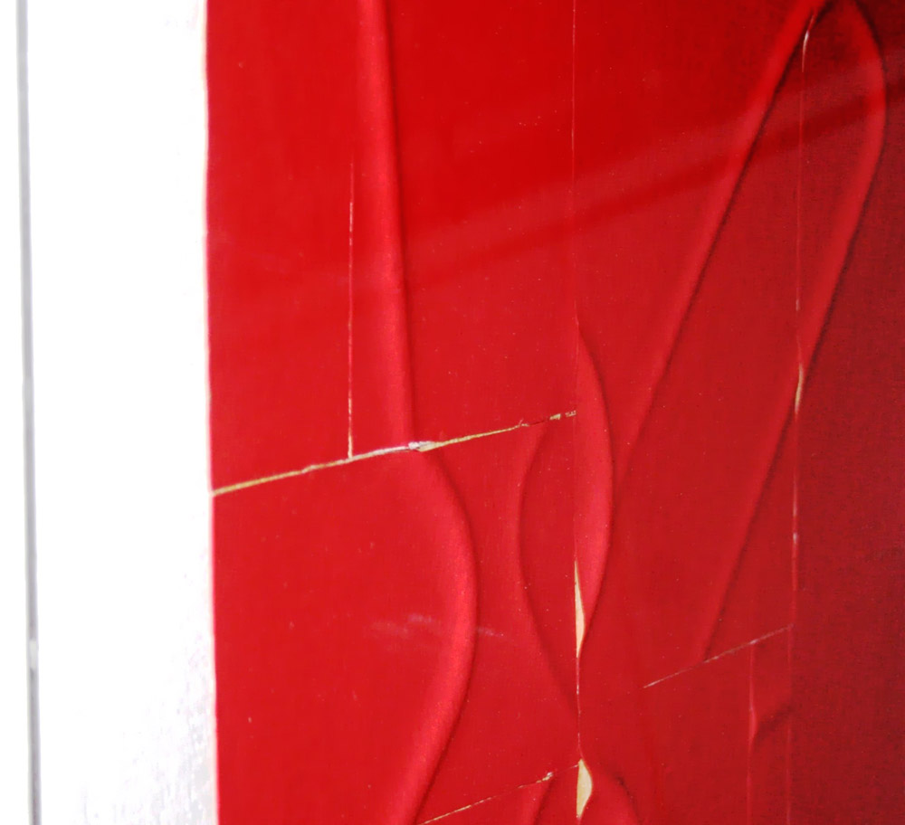 Agostino Bonalumi 1935, Vimercate (Mi) - 2013, Vimercate (Mi) - [Italia] Rosso estroflessione su carta ritagliata 45x35 2002 firma dell’artista in basso a destra; opera contenuta in teca di plexiglass certificato di autenticità su fotografia firmato dall’artista