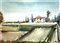 Virginio Bonifazi 1918, Macerata (Mc) - 1997, Macerata (Mc) - [Italia] Casolare in pianura acquerello su carta 50x64 c. 1965 firma dell’artista in basso a destra certificato di provenienza garantita Picenum