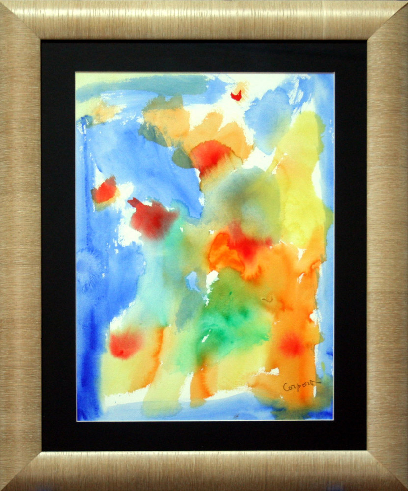 Antonio Corpora 1909, Tunisi (Tunisia) - 2004, Roma (Rm) - [Italia] Viaggio in Francia acquerello su carta 51x36 2001 firma dell’artista in basso a destra e sul retro con timbro dell'archivio; con cornice formato 70x55 cm certificato di autenticità firmato dall’artista