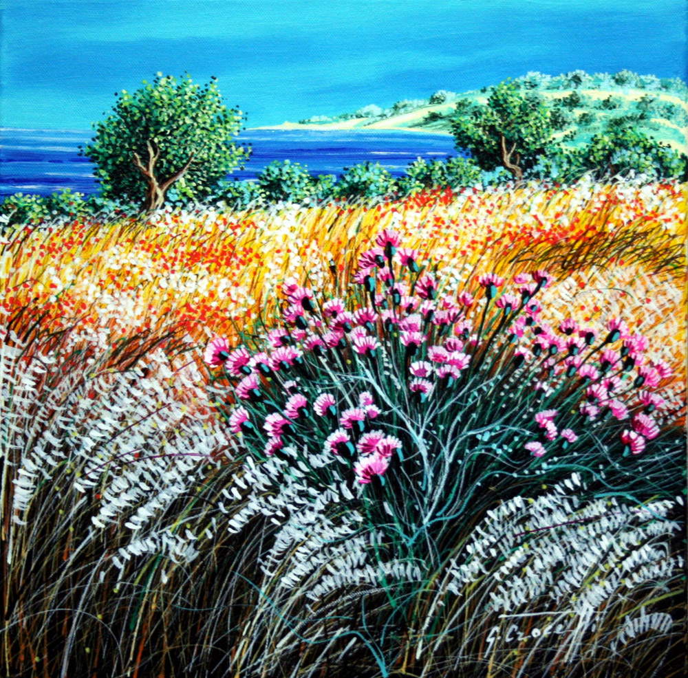 Giorgio Crocetti 1965, Teramo (Te) - [Italia] Estate sull'Adriatico mista su tela 40x40 2014 firma dell’artista in basso a destra e sul retro certificato di provenienza garantita Picenum