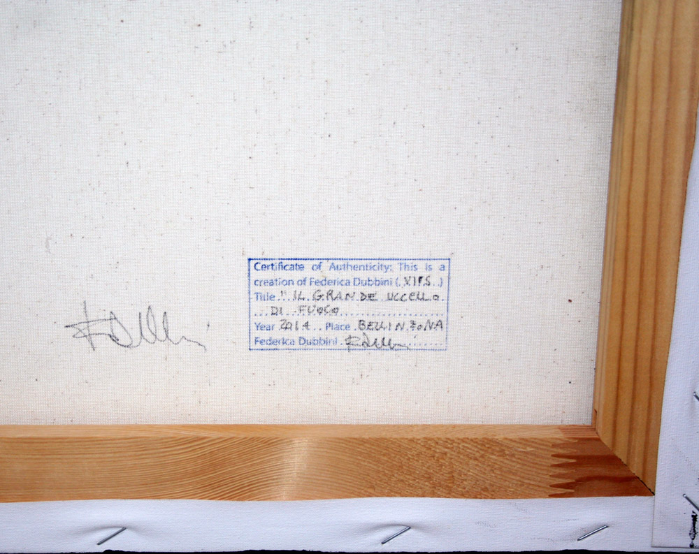 Federica Dubbini 1976, Genova (Ge) - [Italia] Il grande uccello di fuoco mista su tela 40x100 2014 firma dell’artista sul retro certificato di autenticità firmato dall’artista