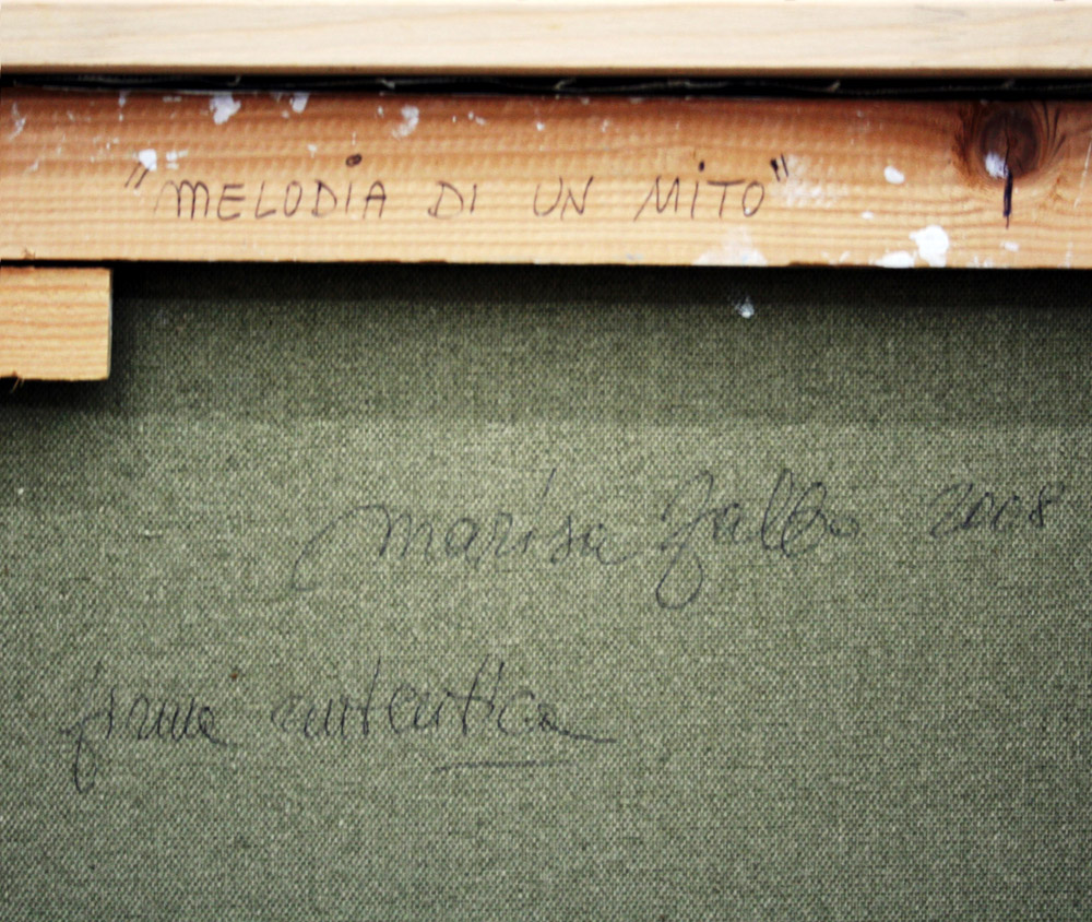 Marisa Falbo 1950, Palermo (Pa) - [Italia] Melodia di un mito acrilico su tela 50x70 2009 firma dell’artista in basso a destra e sul retro; con cornice formato 54x74 cm certificato di provenienza garantita Picenum