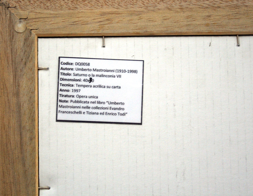 Umberto Mastroianni 1910, Fontana Liri (Fr) - 1998, Marino (Rm) - [Italia] Saturno o la malinconia VII tempera acrilica su carta 30x40 1997 firma in basso a destra; con cornice formato 61x70 cm opera pubblicata nel libro "Umberto Mastroianni nelle collezioni Evandro Franceschelli e Tiziana ed Enrico Todi"