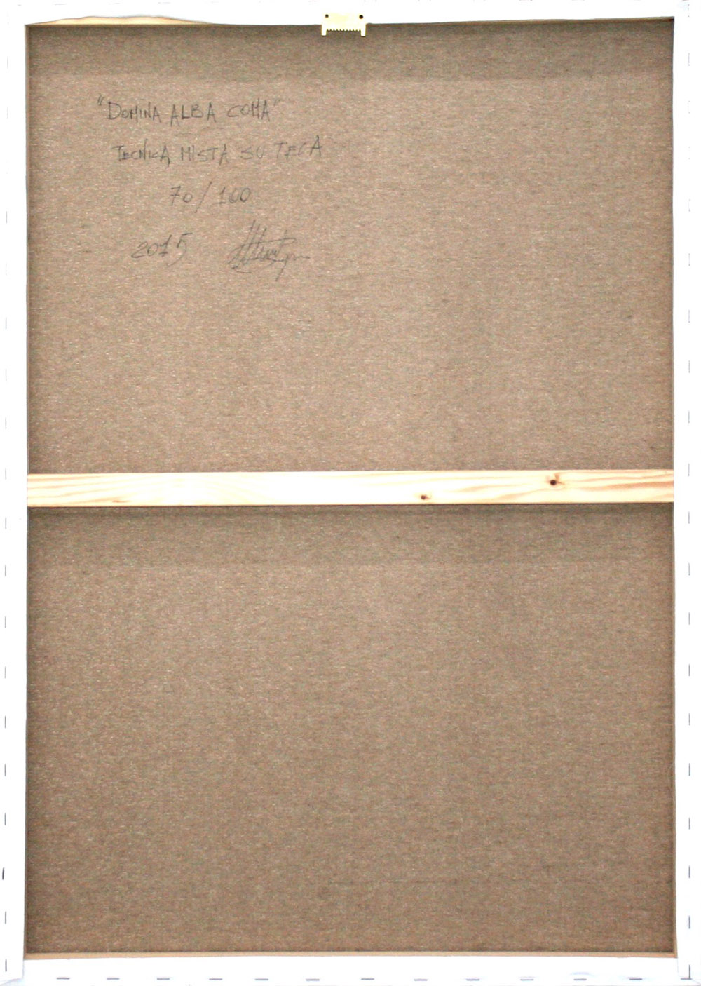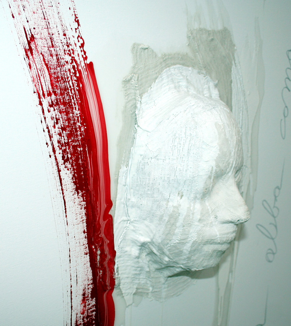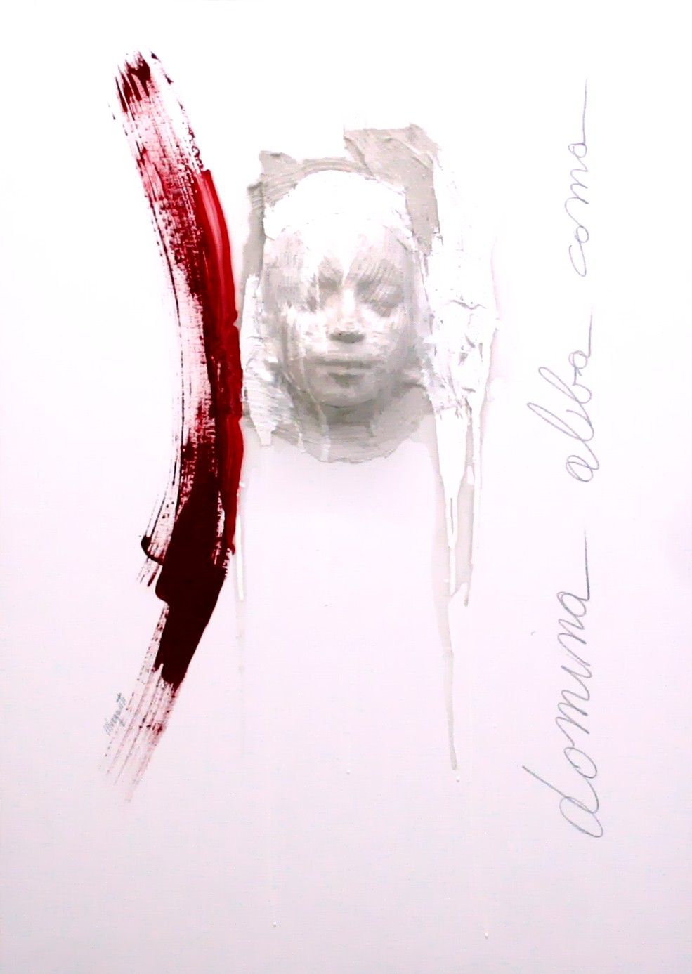 Eugenio Morganti 1973, Lussemburgo (Lussemburgo) - [Italia] Domina alba coma mista su tela 100x70 2015 firma dell’artista sul retro; maschera di garze rilievo 13 cm certificato di autenticità firmato dall’artista